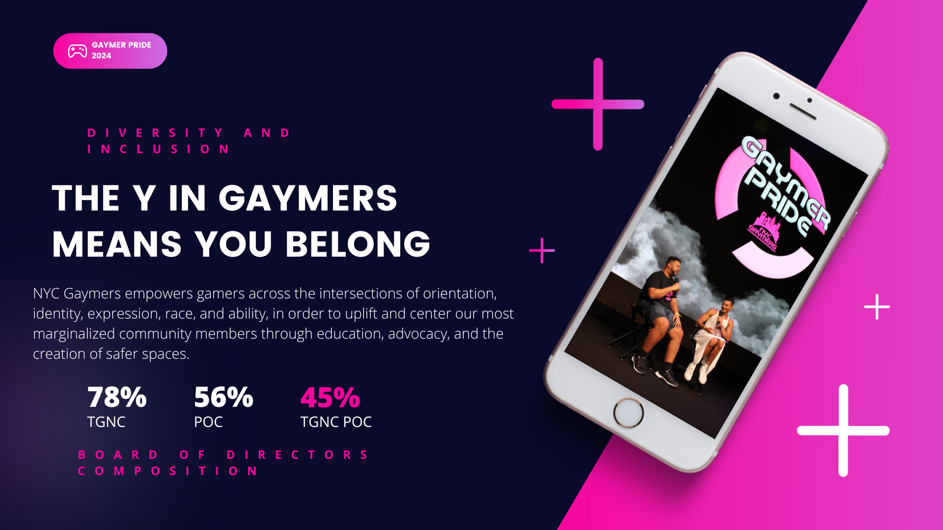 NYC Gaymers Inc. empowers gamers across the intersections of orientation, identity, expression, race, and ability, in order to uplift and center our most marginalized community members through education, advocacy, and the creation of safer spaces.